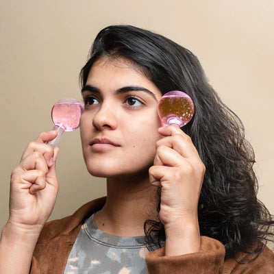 Beneficios de la crioterapia Las Glass Ice Globes actúan instantáneamente para estimular la circulación sanguínea, ayudar a desinflamar el rostro y el contorno de ojos, reducir los brotes, cerrar los poros y minimizar la aparición de líneas de expresión y arrugas.